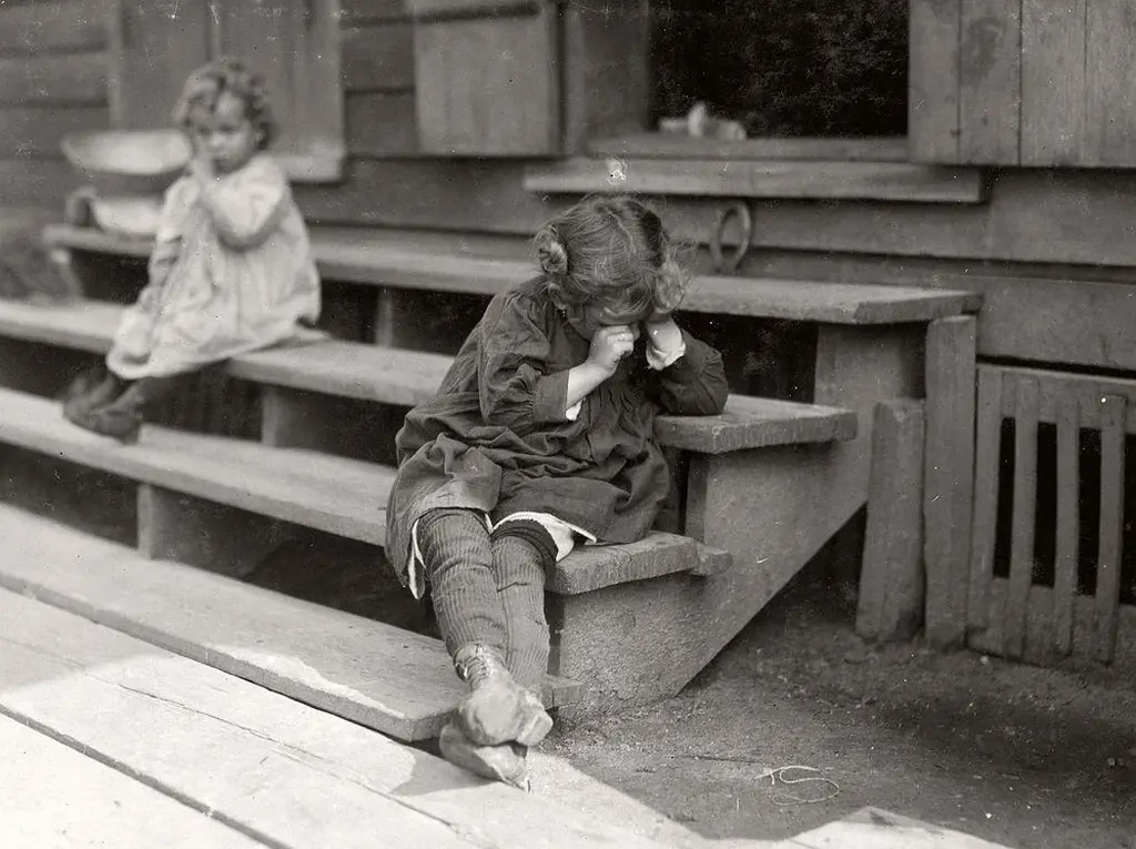 5-year-old after dayโs work, was tired and refused to be photographed, Biloxi, Mississippi, 1911. Photo by Lewis Hine for National Child Labor Committee.